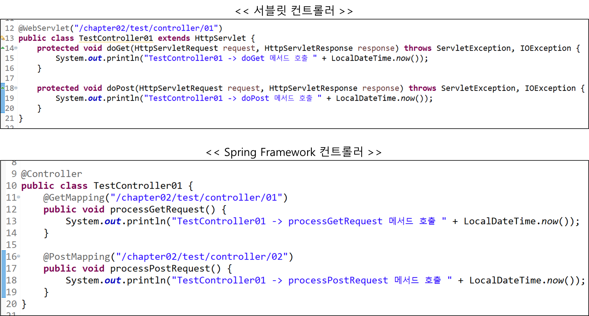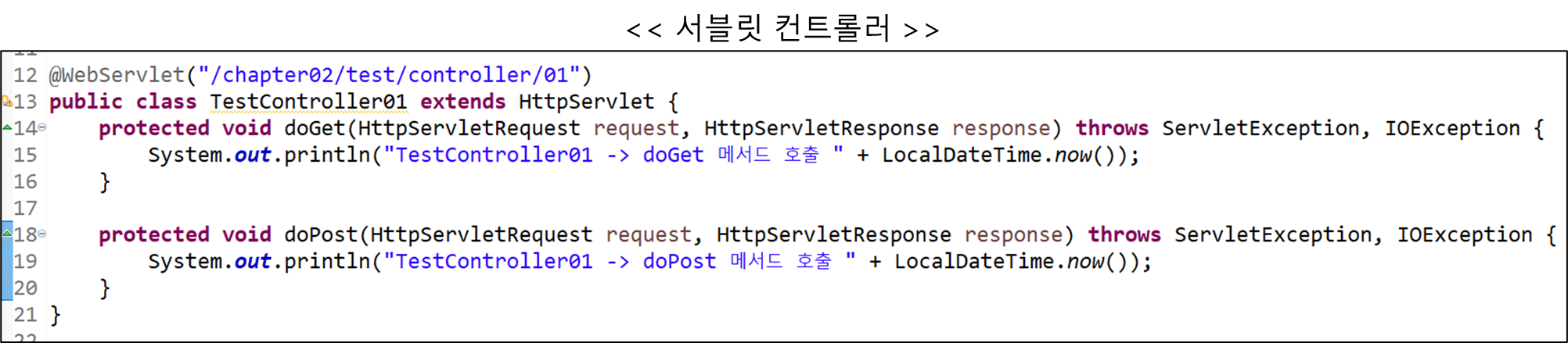System.out.println("TestController01 -> doPost 메서드 호출 " + LocalDateTime.now());