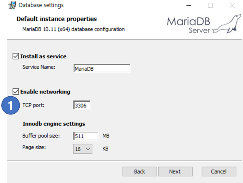 TCP port: 3306 인데 이 설치 프로그램의 우측 상단을 보면 [ MariaDB Server ] 라고 되어있음