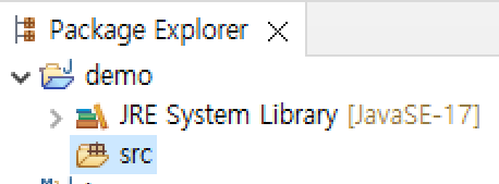 Eclipse에서 자바 프로젝트를 생성하면 다음과 같이 생성됨