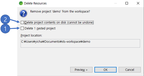 이제 [ demo ] 프로젝트를 지워보자