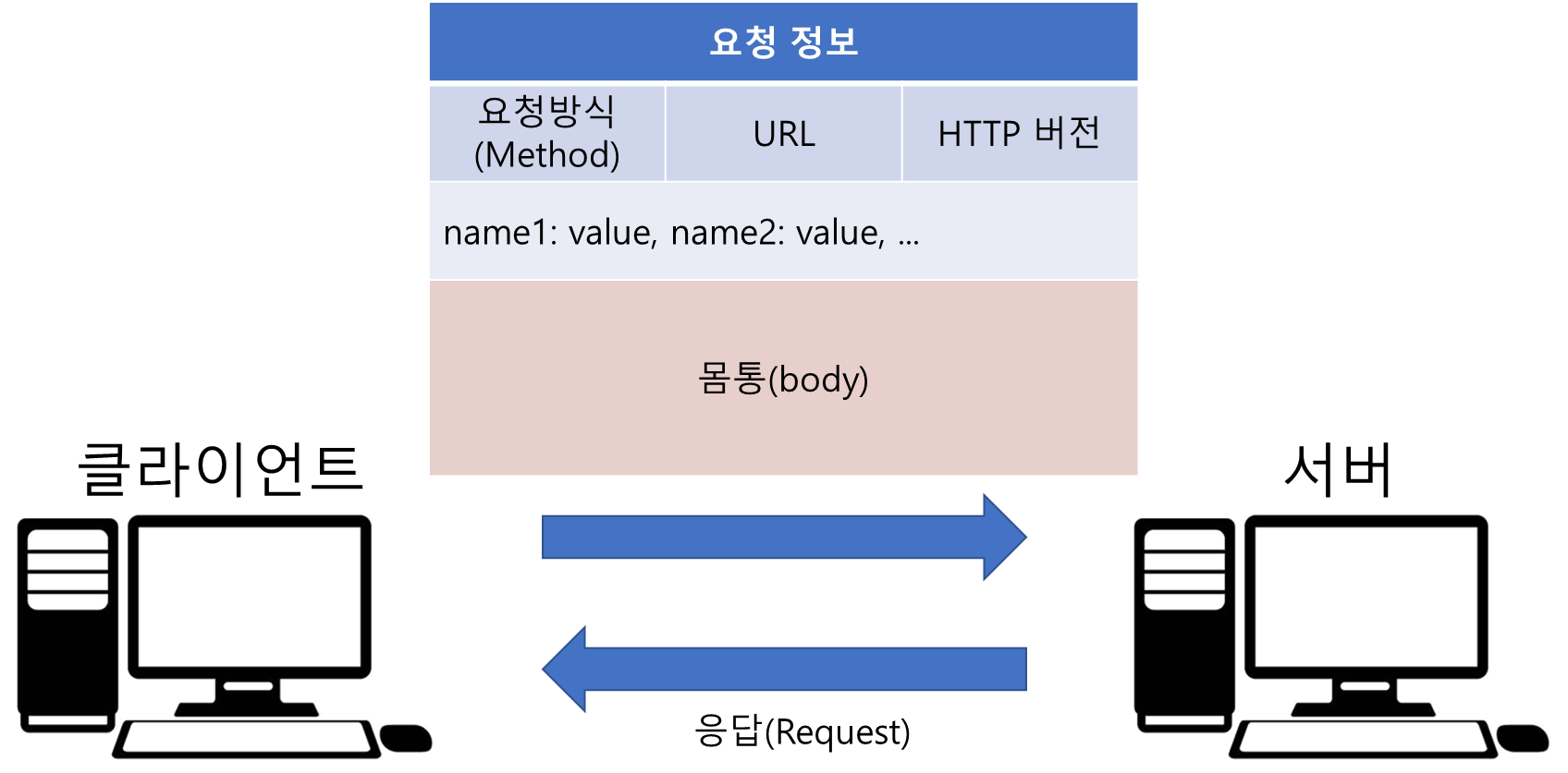 클라이언트가 서버로 요청할 때 클라이언트는 요청 정보를 만들어 서버에게 전달함