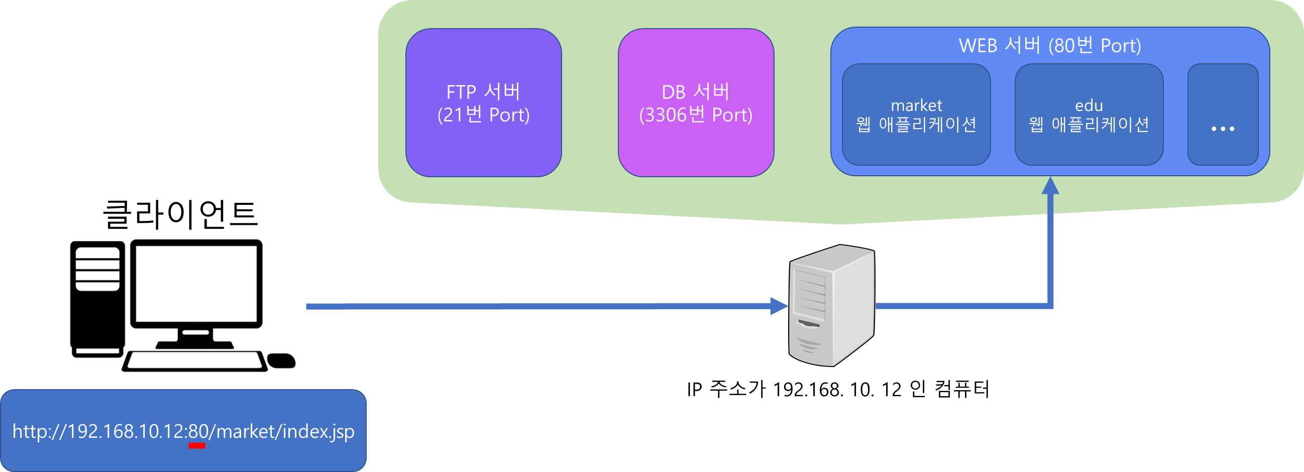 클라이언트가 브라우저에 http://192.168.10.12:80/market/index.jsp 를 입력해 요청을 보냈다면