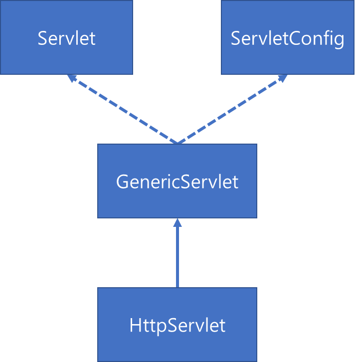 GenericServlet은 추상 클래스로 Servlet, ServletConfig 인터페이스를 구현한 추상 클래스임