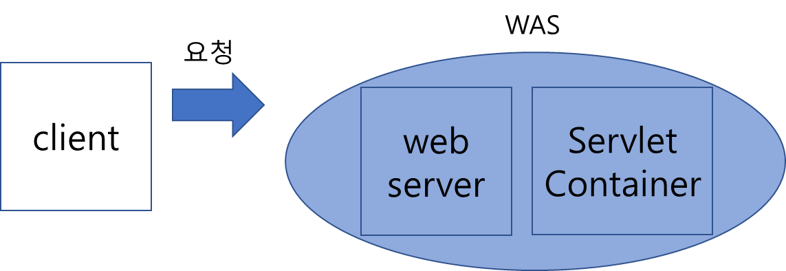 클라이언트가 어떤 요청을 했는데 Servlet 을 요청한거라면 WAS의 web server는 ServletContainer에게 처리 권한을 넘김