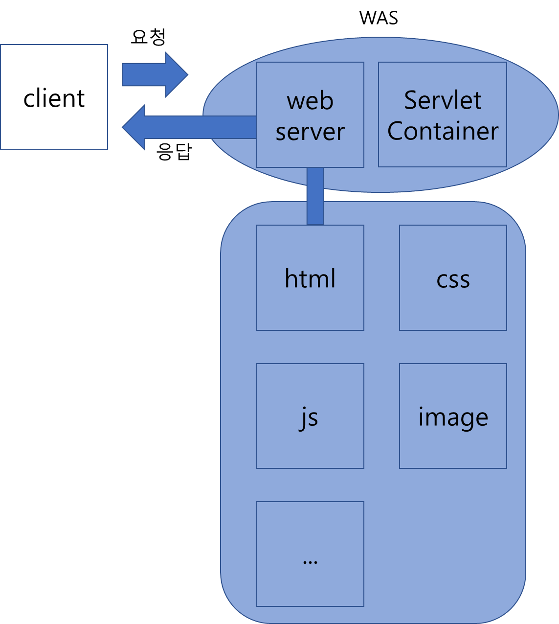 클라이언트가 어떤 요청을 하게 되면 WAS의 웹 서버는 정적 컨텐츠를 요청하는건지 동적 컨텐츠를 요청하는건지 판단함