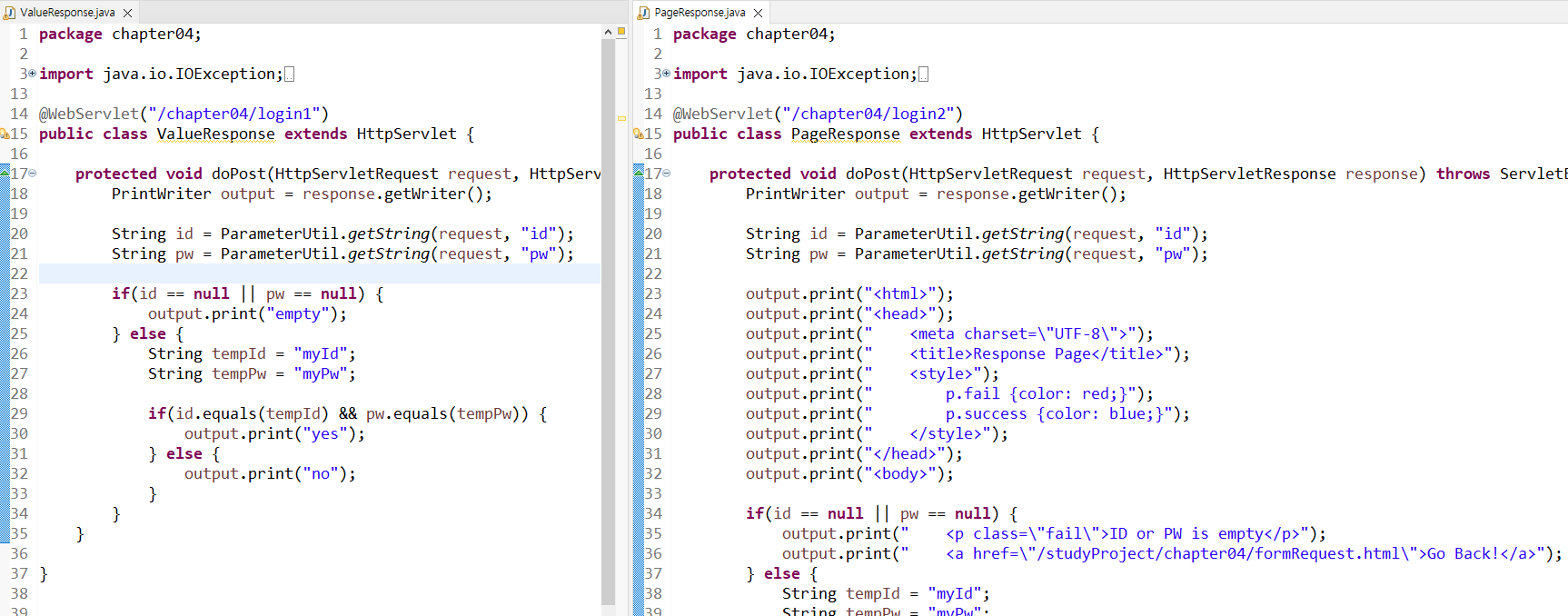 바뀐 부분은 서블릿의 doPost 메서드 내 if ~ else 코드임