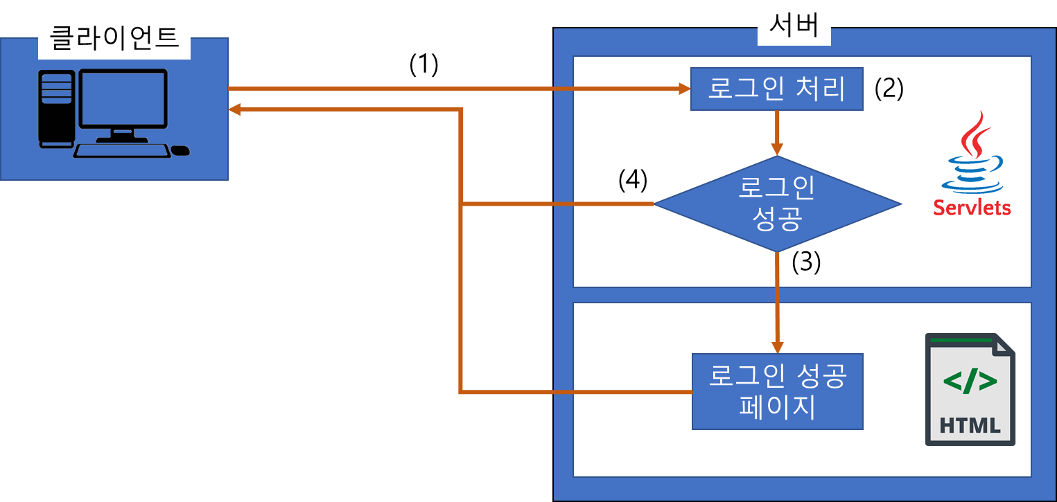 로그인에 성공했을 경우 서블릿 자체에서 로그인 성공 페이지를 전달하도록 PrintWriter 객체를 꺼내서 로그인 성공 페이지를 print 해도되고 포워딩을 할 때는 앞서 배운 세 가지와 여기서 배운 한 가지 중 어느 것을 사용해도 상관 없음