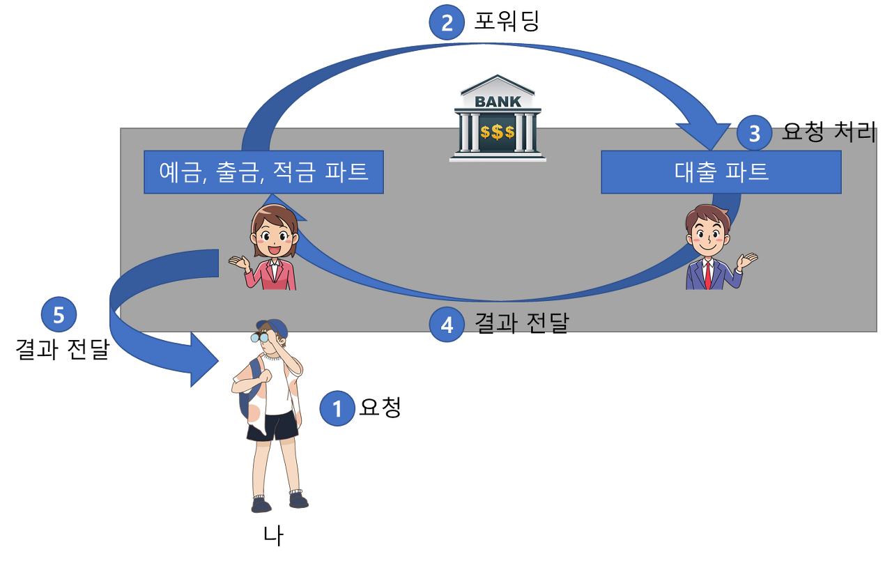 이 포워딩의 좀 더 적절한 예를 들자면 분업을 예로 들 수 있음