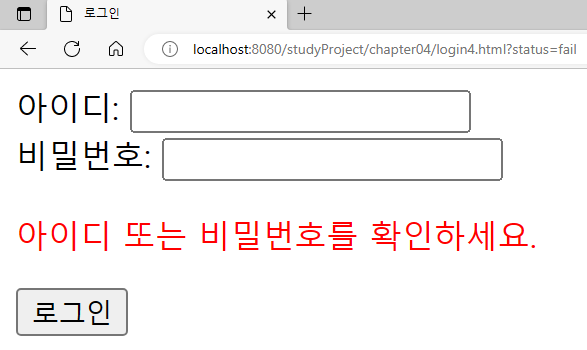 response.sendRedirect("/studyProject/chapter04/login4.html?status=fail");