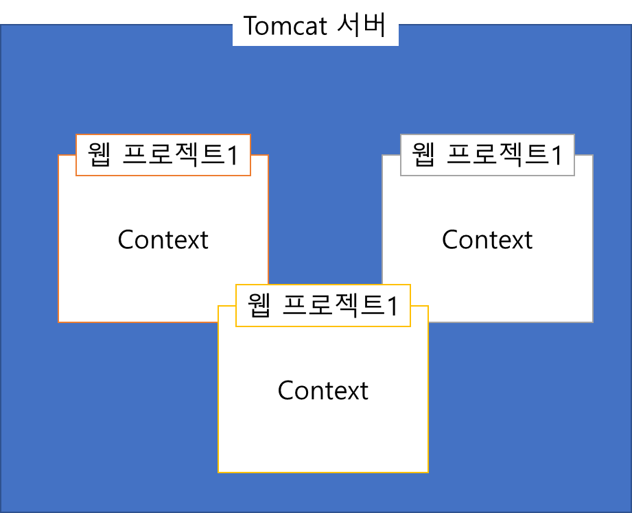 웹 프로젝트 이름은 무엇이고 웹 프로젝트는 어느 경로에 있고, 웹 프로젝트가 동작하는 서버의 정보는 어떻게 되고 등 웹 프로젝트의 정보를 담고 있는 것이 컨텍스트임