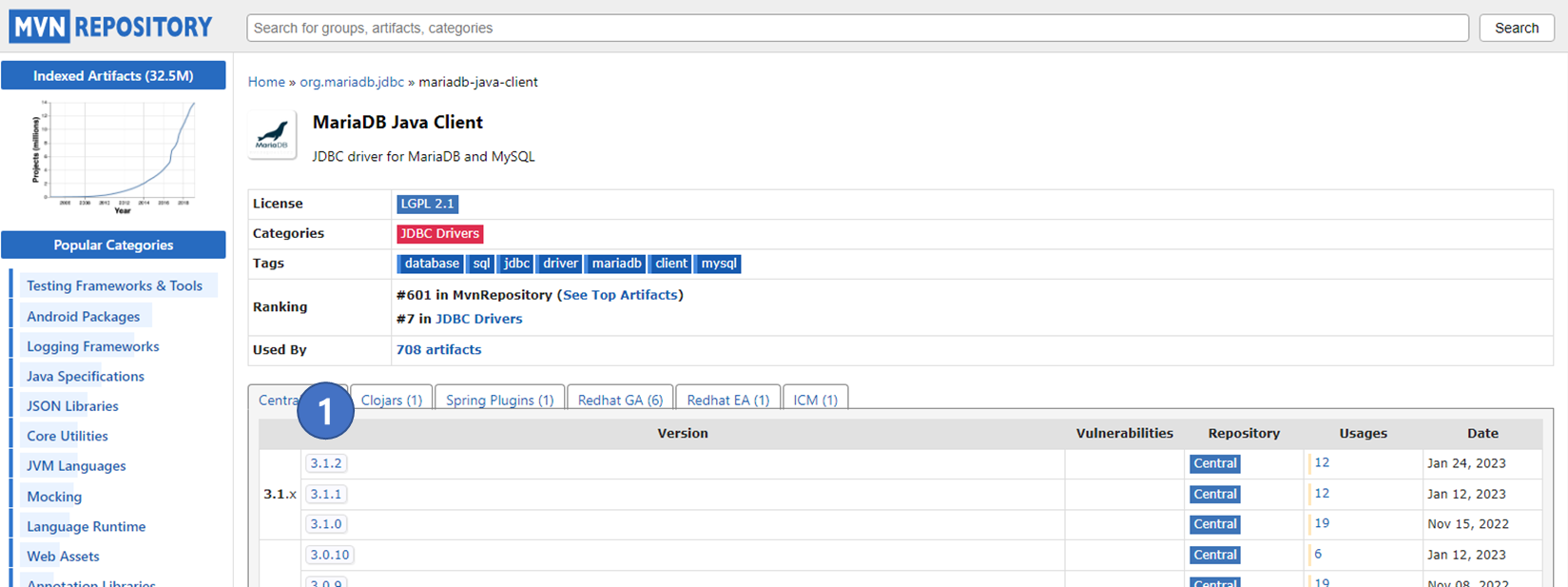 우리는 MariaDB를 사용하므로 MariaDB가 제공하는 라이브러리를 다운 받아야함