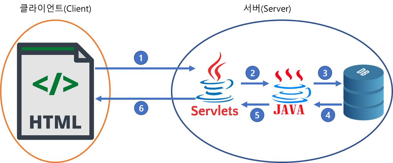 앞서 [ 서블릿 본격적인 시작 ( https://codingaja.tistory.com/21 ) ] 글에서 실제 웹 서비스는 아래와 같이 동작한다고 했음