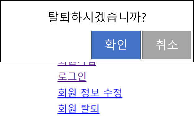 회원 탈퇴 버튼이 구현되어있으니 별도의 코드를 입력할 필요는 없음