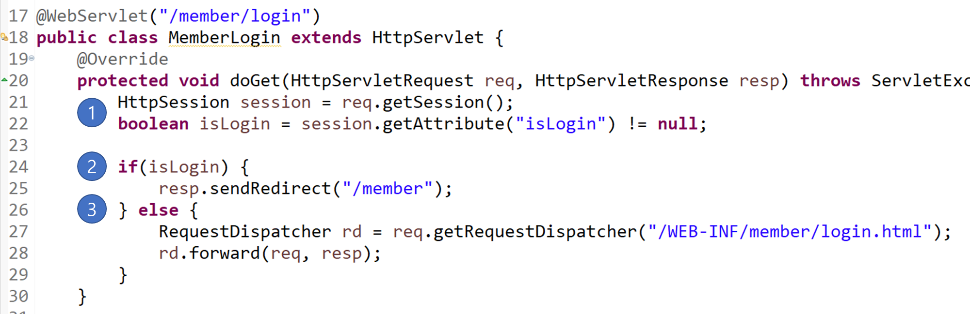로그인 페이지로 이동시켜주는 서블릿(member 패키지 -> MemberLogin서블릿)에서 세션을 활용해
