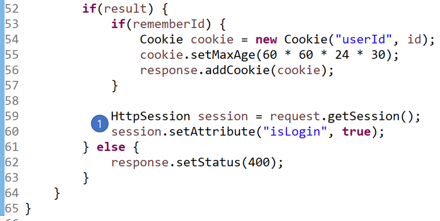 member 패키지 내 MemberLogin 서블릿에서 로그인에 성공했을 때에 아래와 같이 추가하자
