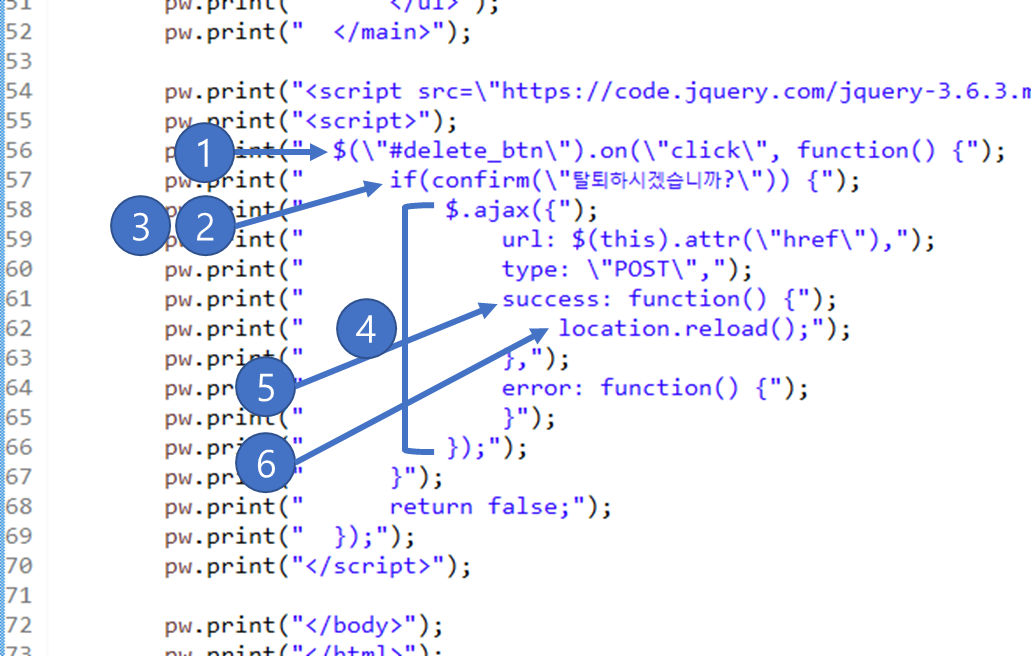 pw.print(" if(confirm(\"탈퇴하시겠습니까?\")) {");