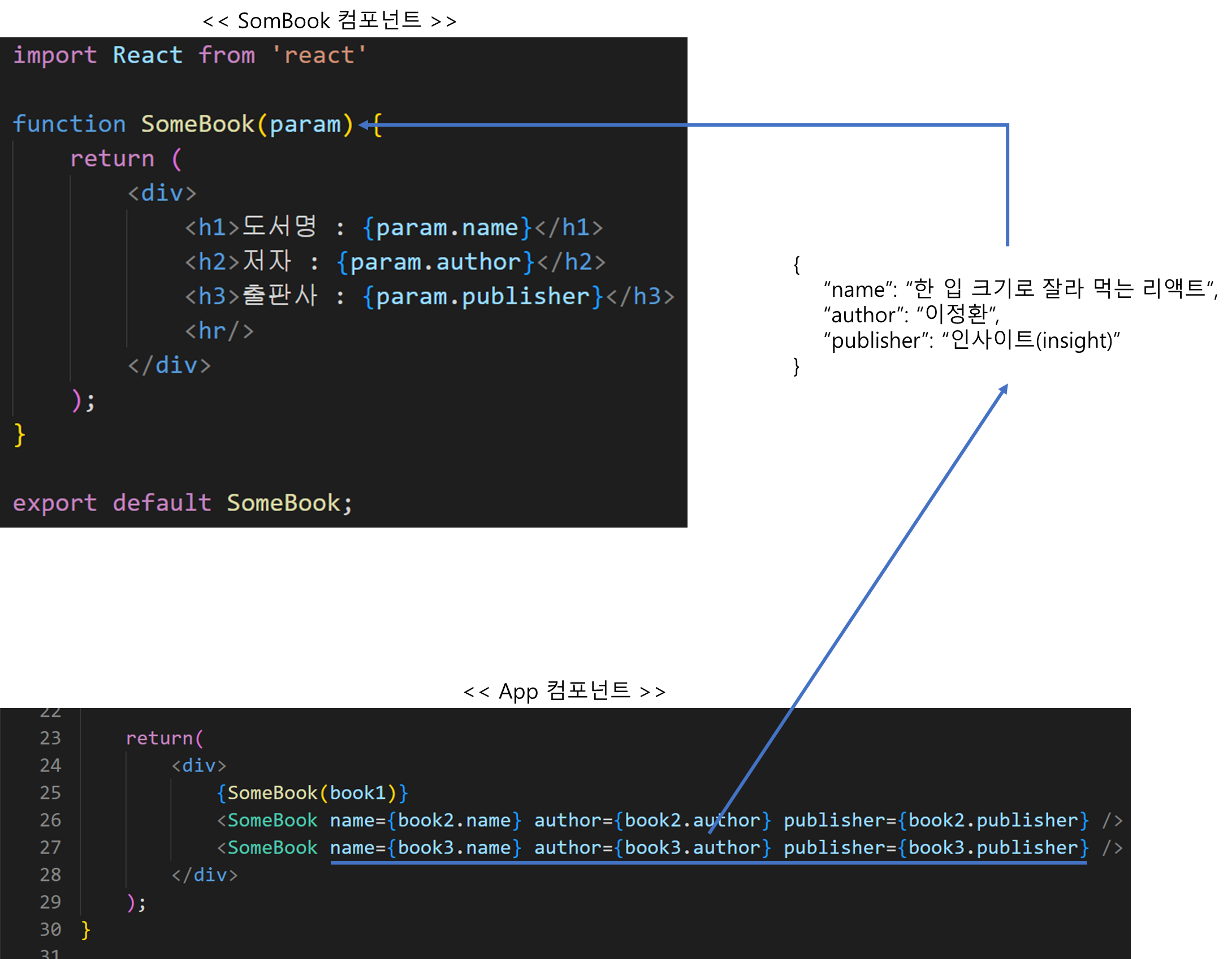 SomeBook 컴포넌트의 매개변수 이름을 props로 바꾸자