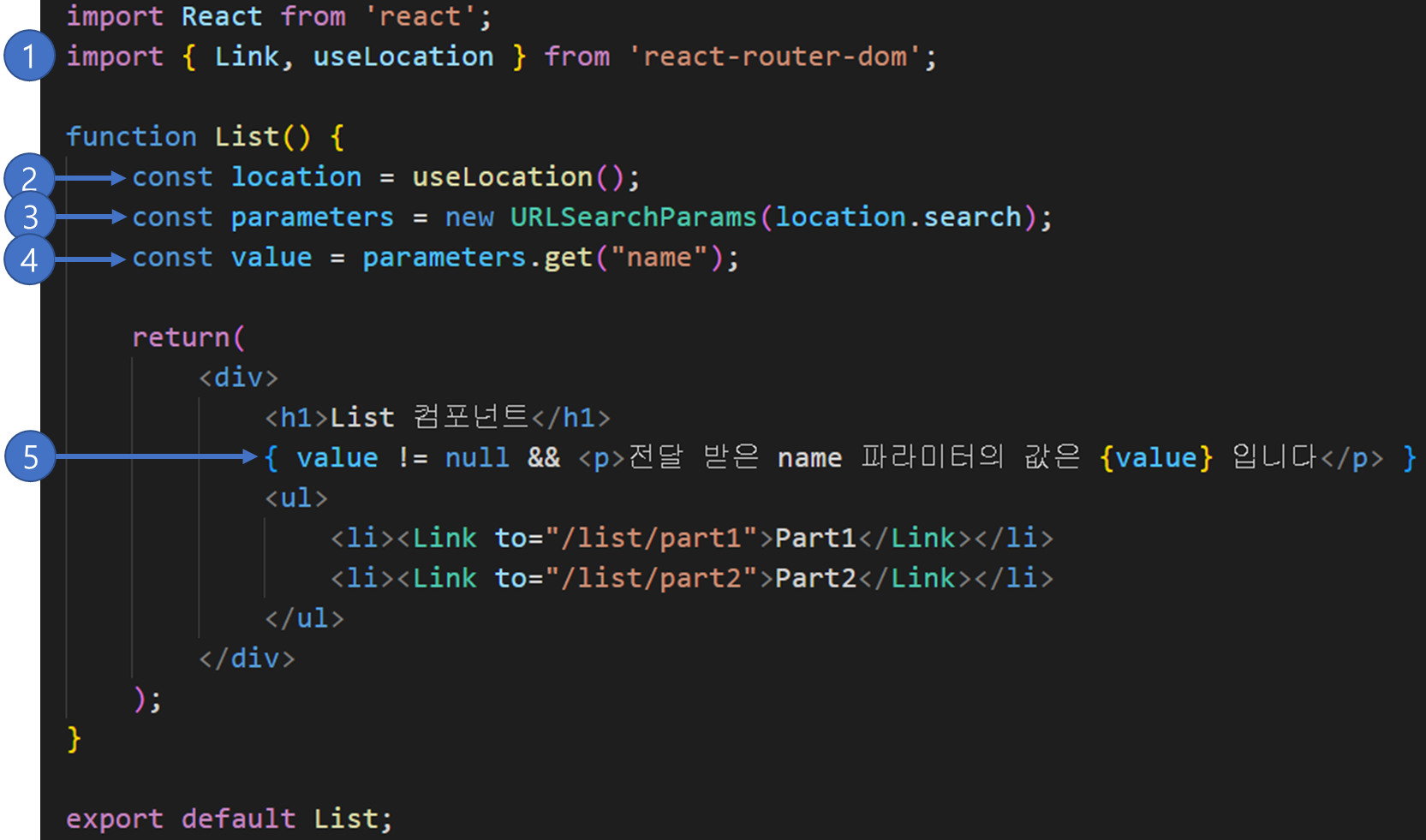 여기서 특징적인건 JS에서는 location 객체를 사용할 때 바로 사용할 수 있었지만 리엑트는 반드시 window.location 으로 접근(1)해야함