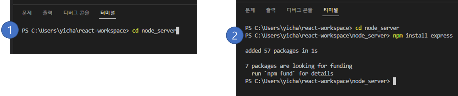 노드 서버를 실행시키는 명령 : node (컨트롤러 파일명)