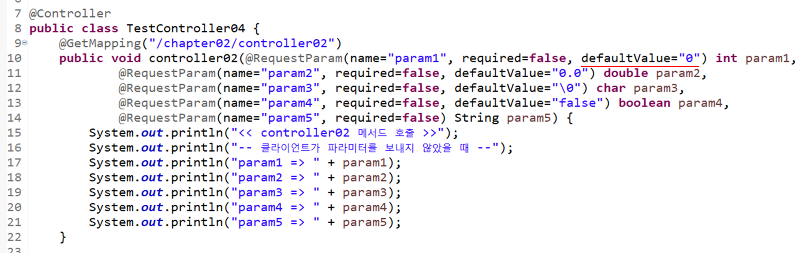 프로젝트 -> com.study.chapter02 -> RestController 클래스 내 아래 컨트롤러를 추가하자