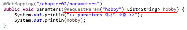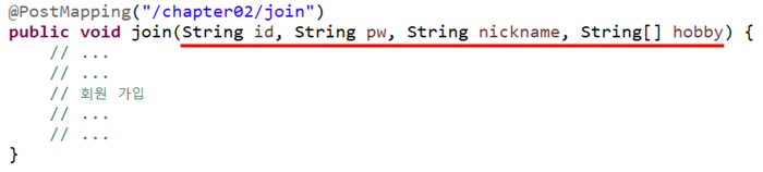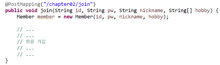 컨트롤러에서 클라이언트가 보낸 값을 사용하려면 전에 배운 것처럼 클라이언트가 보낸값을 꺼내기 위해 매개변수를 적절히 추가할 수 있음