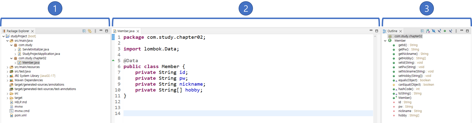 프로젝트 -> com.study.chapter02 -> DataDto 클래스를 추가 하고 아래 코드를 추가하자
