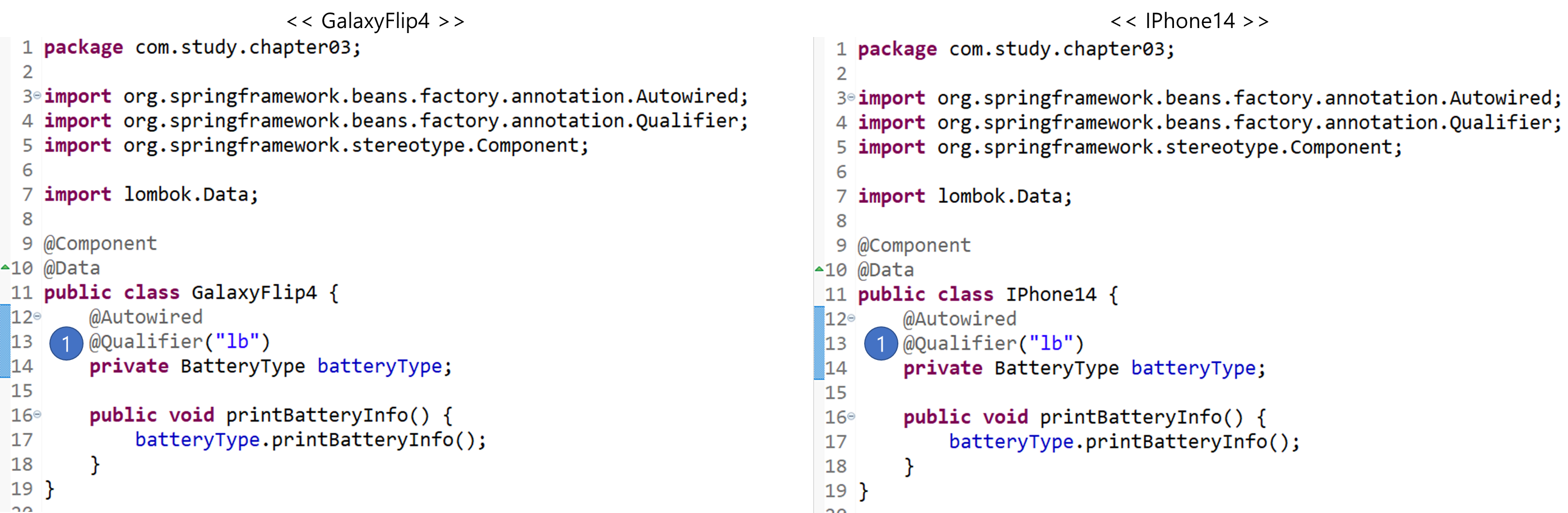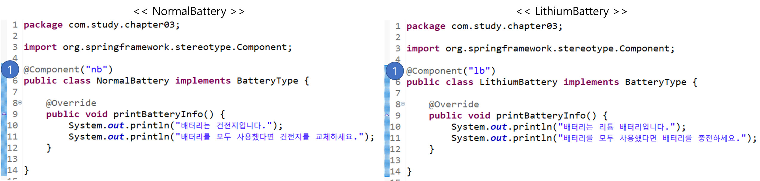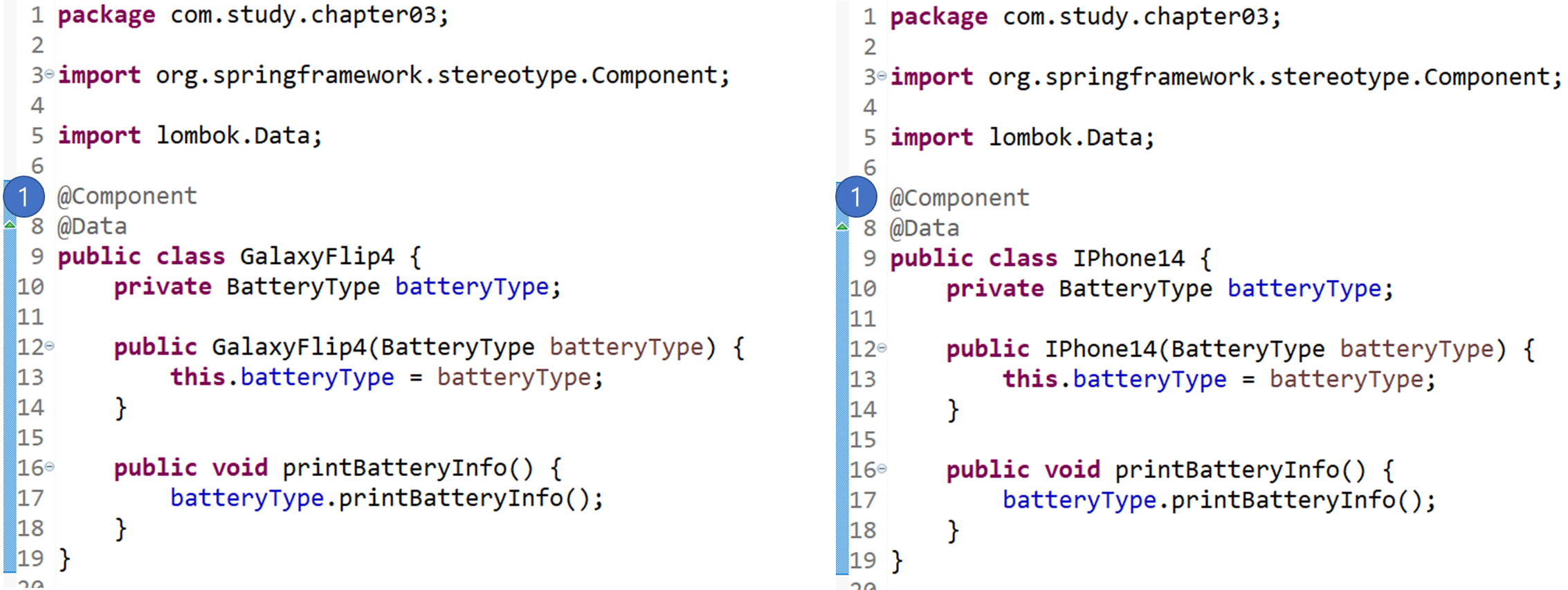 여기서 각 스마트폰에 사용한 @Component 애너테이션과 각 베터리에 사용한 @Component 애너테이션이 다름